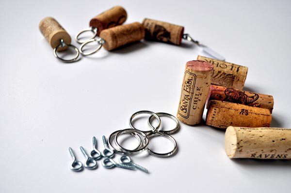 Для того, чтобы сделать брелок, просверлите отверстие в середине пробки и проденьте крючок или толстую проволоку. Можно продеть несколько бусин, аксессуаров или украсить брелок глиттером. Сквозь крючок проденьте кольцо от ключей. Получится необычный брелок, который вы сделали своими руками.
