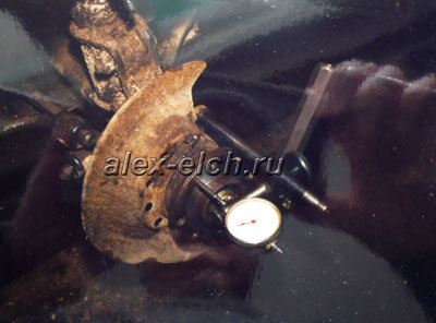 Ладно, уговорил. Проверили. Биение рабочей поверхности диска 25 соток! Вот те раз. Хотя завод и допускает большую величину — 15 соток, но зачем мне на машине, на которой я люблю прохватить на трассе с ветерком, такое ощутимое биение? Вон как стрелка индикатора скачет!