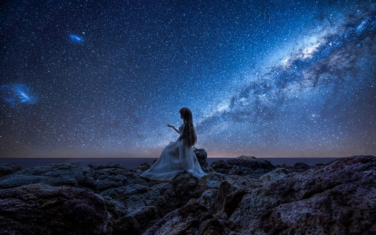 Олеис поставила чашку с водой на подоконник и, не отрываясь, смотрела на отражение звезд в воде. Асат пристроил, наконец, телескоп и начал наблюдать за звездами в небе. Оба молчали. Так прошло несколько часов. Звезды сияли все ярче. На небе не было ни облачка, стояла ясная летняя ночь. Казалось, вся деревня уснула, не спали только Олеис и Асат. Наконец, волшебник махнул рукой и прошептал: «Пора».