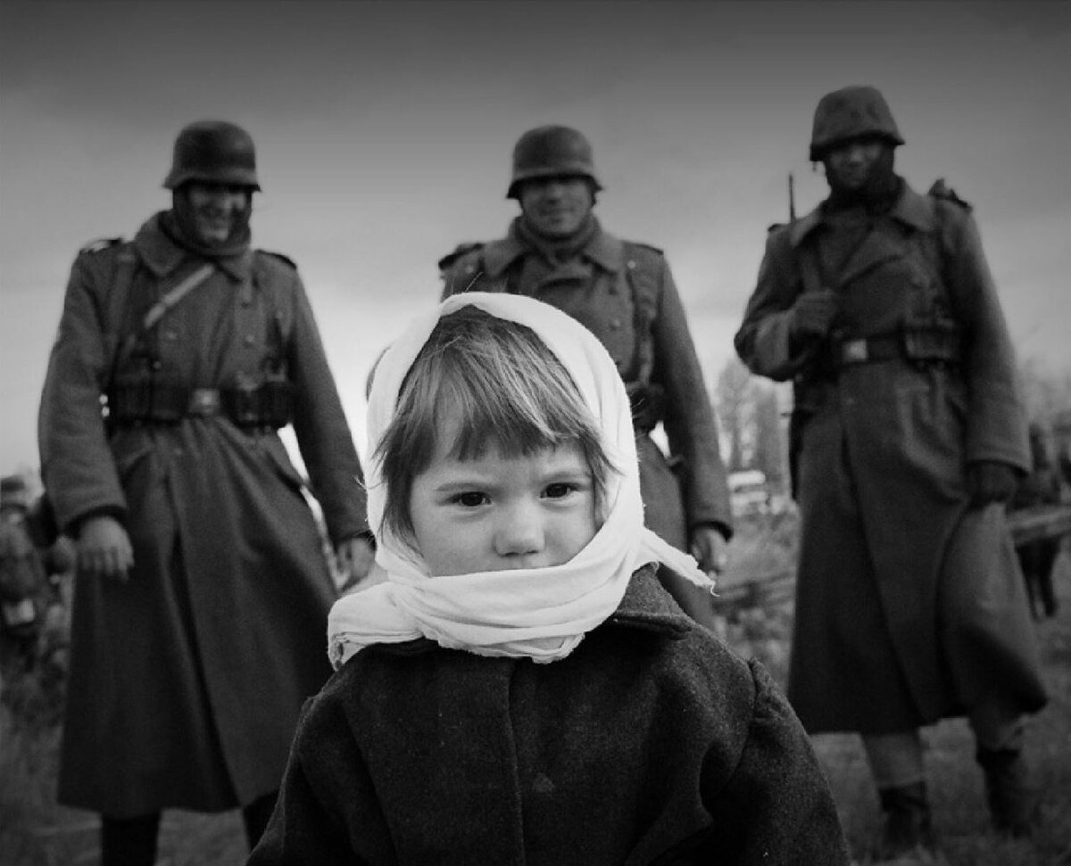 Фашисты пришли в их деревню, издевались над людьми, собрали вечером всех детей и приставили к стенке 12 малышей, чтобы расстрелять... Несколько мужчин с той деревни встали перед детьми, их расстреляли, дети живы, но спустя две минуты на них опять наставили оружие, стало еще несколько мужчин и стариков перед детьми, их опять расстреляли, фашистов это начало веселить, так продолжалось до тех пор, пока все мужчины не были расстреляны.