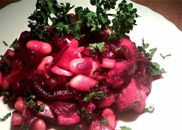 Если у Вас есть в холодильнике варёная свекла, селёдина и банка фасоли, то ни какие неожиданные гости вам не страшны. Из указанных ниже ингредиентов, вы всегда сможете приготовить на закуску винегрет. Блюдо готовится достаточно быстро и для его приготовления не потребуются, какие-то особые навыки. Уверен справится любая хозяйка. Обязательно попробуйте приготовить. Вам понравится! Что потребуется для винегрета, смотрите ниже... Необходимые ингредиенты для блюда: · Селёдка – одна рыбинка среднего размера; · Свёкла – один корнеплод; · Консервированная белая фасоль – одна банка; · Лук репкой – одна луковка; · Масло растительное – три ст. ложки; · Яблочный уксус – немного, на свой вкус; · Зелень (лук, укроп, сельдерей, петрушка) – на свой вкус из наличия. Порядок приготовления закуски: 1. Итак, приступим! Берем свеклу, если у вас нет отваренной, то для начала отварим её. Затем свеклу остужаем, чистим от кожицы и пропускаем в крупную тёрку. 2. Пока свекла варится, тем временем подготовим ост