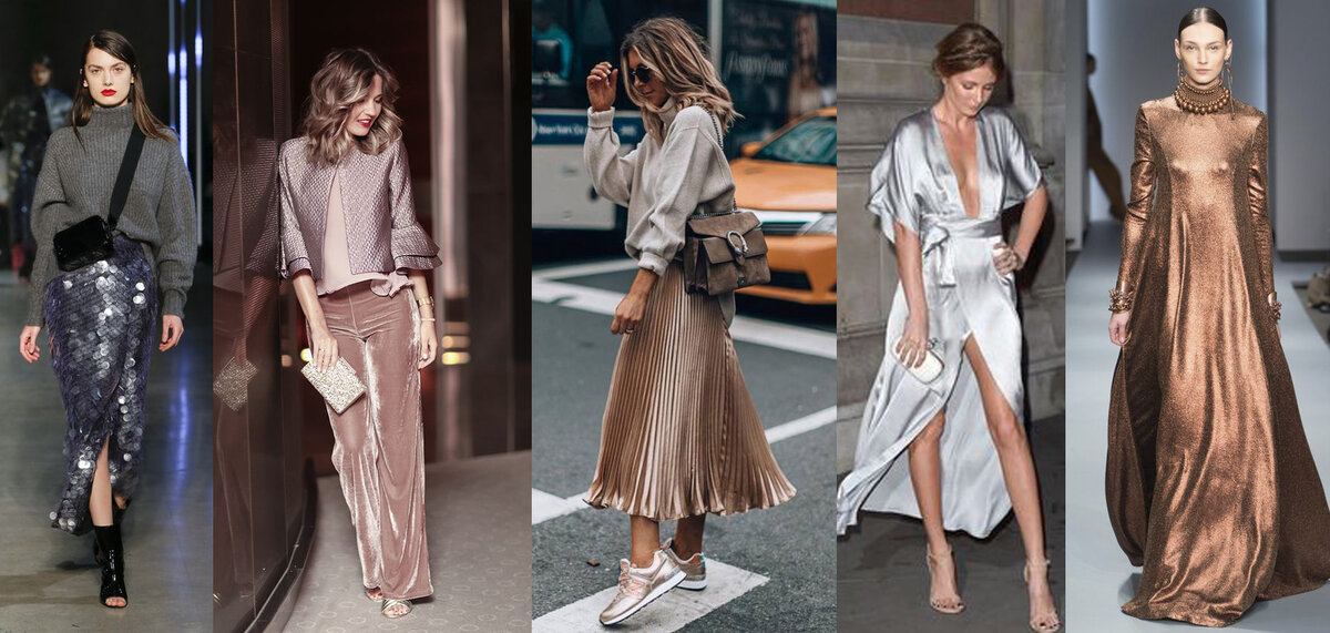 Без промедлений и интриг делюсь - эта зима будет блестящей. Тренды диктуют свои правила: все должно сверкать. Если ты не фанат блесток и пайеток, выбирай вещи из блестящих тканей - бархата, атласа, люрекса. Или добавь в свой спокойный образ блестящие аксессуары: • Ботильоны на тостом каблуке • Топ или футболку с люрексом • Колготки • Брюки • Носочки Если ты следишь за трендами то хоть одна вещь из люрекса в этом сезоне просто необходима в твоем гардеробе. Надеть платье из блестящей ткани можно поверх трикотажного светлого гольфика или поверх белой футболки. В этом сезоне платья, гольфы, топы и брюки из люрекса как нельзя популярны. Но так как это очень специфическая ткань, а мода на нее скорее всего сезонная, тратить много денег на такую одежду не нужно. Советую этим трендом не сильно увлекаться и инвестировать в одно красивое платье из люрекса, лучше - классического кроя. Через 3-4 года мода на люрекс вернется, а ты уже с идеальным платьем. Многие стилисты советуют девушкам с размер