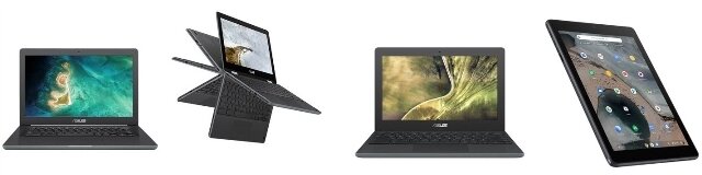 Новая линейка хромбуков, получившая соответствующее название Chromebook Education, разработанная специально для образцового предназначения, включает 4 основных устройства: два классических лэптопа, один конвертируемый ноутбук и один планшетный компьютер. Основная модель, вышедшая под серийным номером C204, получила минимальную диагональ дисплея на 11,6 дюйма со стандартным разрешением 1366х768 точек, довольно слабую аппаратную составляющую Celeron N4000 от Intel на 2 ядра с 4-гигабайтной оперативной памятью и 32 Гб встроенного хранилища стандарта eMMC 5.1. Из интерфейсного оснащения стоит выделить наличие стандартного набора в виде USB-портов Type-A и Type-C, а также слот для расширения заданного объема памяти формата microSD и 3,5-миллиметровый аудиовыход. Вес устройства не превышает 1,2 кг. Средняя модель ряда C403 имеет большую 14-дюймовую диагональ и более мощный процессор Celeron N3350. Естественно, эти особенности не могли не отразиться на массе устройства, составившей 1,7 кг.