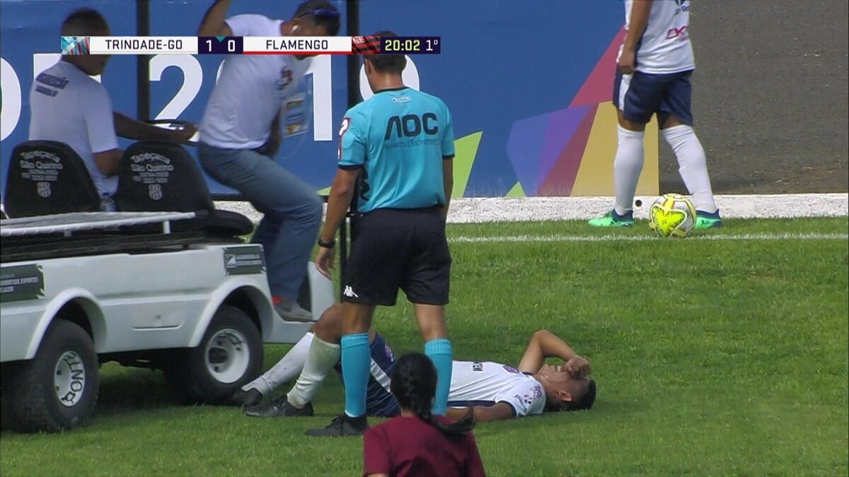 Молодежные команды "Триндаде" и "Фалменго" проводили матч в рамках молодежного кубка штата Сан-Паулу, когда произошел эпичный эпизод. Полузащитник хозяев Бернардо лежал на газоне и ожидал медицинской помощи, она подъехала, но электрокар с медиками спеша на помощб не рассчитал траекторию езды и проехался по ноге игрока. Обратите внимание на одного из врачей: ему и самому смешно. Примечателен еще тот факт, что "Триндаде" сенсационно обыграли "Фламенго" со счетом 1:0.