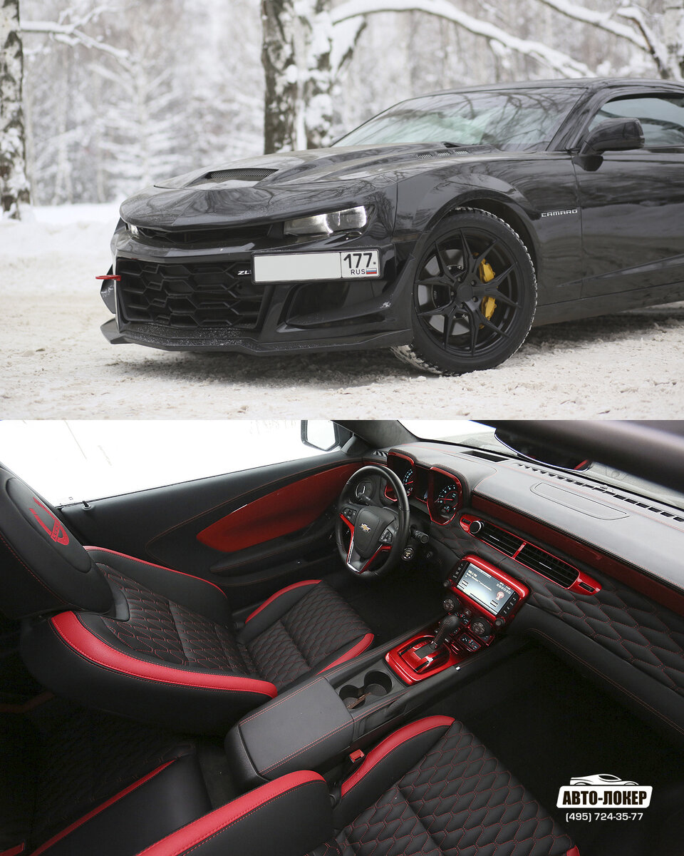 В самый канун нового года 2019 мы отдавали этот замечательный проект, который сразу же стал лучшим на основе того количества лайков, которыйе мы получили в нашем Инстаграм. Нам достался агрессивный внешне, но совершенно обычный Камаро внутри. Владелец автомобиля попросил нас перешить в салоне все, что только возможно, используя при этом сочетание черного и красного. Мы хорошо потрудились и перетянули в салоне все, что попалось нам на глаза. Вот список того, что мы сделали В работе мы использовали черную кожу Nappa, а так же оригинальную Алькантару цвета Антрацит. Красный акцент мы реализовали на сидениях в виде "ремешков" из красной кожи, а так же компьютерной вышивки на центральных частях сидений и торпедо. Но, на этом "баловаться" красным мы не закончили. Залили всю фурнитуру салона красной Кенди под глянцевым лаком. Выглядит .... ммм ... очень вкусно Такая работа заняла у нас примерно 3 недели и обошлась владельцу автомобиля в 280.000 рублей по состоянию на начало 2019 года. Раб