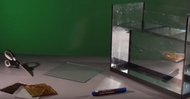 Существует немало способов сделать отверстие в стекле без сверла, а вот как вырезать из стекла фигуры? Например, овал или круг, или просто сделать фигурный рез? Все очень просто - режем обычными ножницами под водой. Сразу скажу, способ не новый, но рабочий. Итак, нам нужен кусок стекла, ножницы и какая-нибудь емкость с водой - в данном случае это аквариум. Читал много, что резать надо на глубине, но все это чушь. Этот способ работает именно с водой, и не зависит от глубины. Дело в том, что трещины стекла при резке ножницами вода заполняет их, и кусочки стекла обламываются, не развивая трещины во все сторону. Тем не менее, края получаются рваными и требуют обработки. Если резать без воды, то получается вот что: Приступаем к делу Берем кусок стекла (заготовку) и погружаем ее в воду: Далее режем, вырезаем окружность, точнее каплевидную форму: Берем стекло потолще и также режем под водой: В итоге у нас должно получиться вот что: Да, еще потребуется грубая обработка напильником и шлифовка,