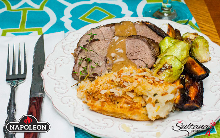 Приготовление Обжаривайте в течение 60-100 минут, или пока внутренняя температура мяса не достигнет 70 градусов. Снимите жаркое с гриля, заверните в фольгу и дайте отдохнуть 15