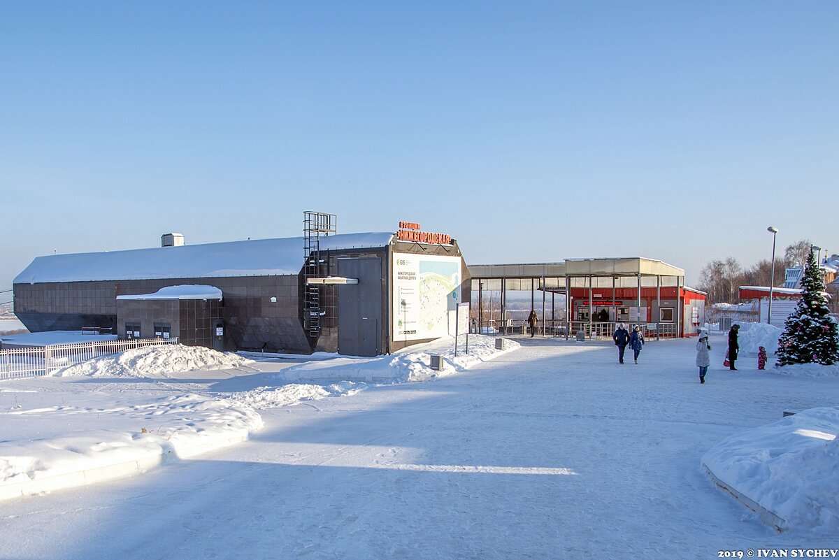 1. Старт из Нижнего Новгорода происходит на станции Нижегородская: комплекс посадочной площадки, турникетов и касс. Билет в одну сторону - 100 рублей. К сожалению, вариант оплатить туда-обратно нет. Т.е. надо прокатится в одну сторону, выйти, купить билет в обратную сторону и снова в кабинку.