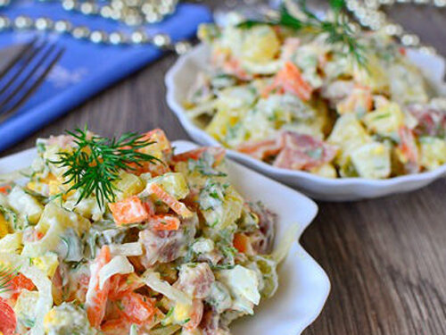 Готовим вкусный салат с консервированной горбушей! Салат получается сытным, и поэтому имеет название "Мужская радость", так что мужчины от него будут в восторге. Впрочем, он понравится не только сильному полу, но и всей семье! Ловите рецепт! Приготовление: Одну баночку консервированной горбуши разминаем вилкой, удаляем крупные кости и перекладываем в салатник. К рыбе добавляем 3 вареных куриных яйца (режем кубиком), 1 крупную вареную картофелину (тоже режем кубиком). Дорогие читатели! В Яндекс.Дзен изменился алгоритм показа материалов. Если Вы не ставите лайк, то мои рецепты и полезные советы вам перестают показывать. Поэтому убедительная просьба поставить лайк, чтобы не потерять из виду мой канал. Вам не сложно, а для меня очень важно! Я трачу много времени на канал, стараюсь для Вас! Спасибо за понимание! Теперь в салатник отправляется одна вареная морковь, 1 средний маринованный огурчик, а также половина луковицы. Лук шинкуем полукольцами. Огурец и морковку нарезаем кубиком. Соль