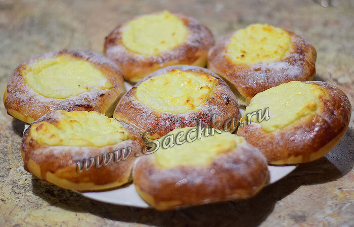 Ватрушки с творогом приготовлены в духовке на дрожжевом тесте.