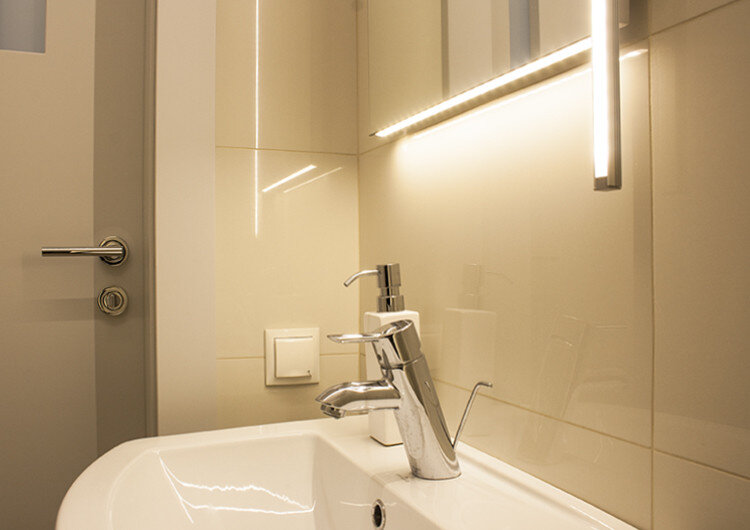 Ванная комната — это не место для проявления фантазии, считают многие собственники квартир и загородных домов. Именно по этой причине владельцы квартир и других жилых помещений, которые затеяли ремонт, приобретают самый простой светильник или скромную люстру и останавливаются на достигнутом. А получается в результате скучная ванная комната, в которой нет ярких пятен, интересных моментов и правильного освещения как такового. А ведь именно ванная комната является помещением, которое позволяет нам преобразиться утром после сна или вечером после работы. Подсветка ванной светодиодной лентой одно из интереснейших решений. К выбору осветительного оборудования в ванной комнате следует отнестись максимально внимательно и ответственно. Обратите внимание, что сегодня приобретением обычной люстры или светильника никого не удивишь — следует обратить внимание на оригинальные подсветки, которые при этом несут функциональную нагрузку. Подсветка ванной светодиодной лентой Подумайте о подсветке полок