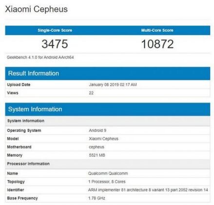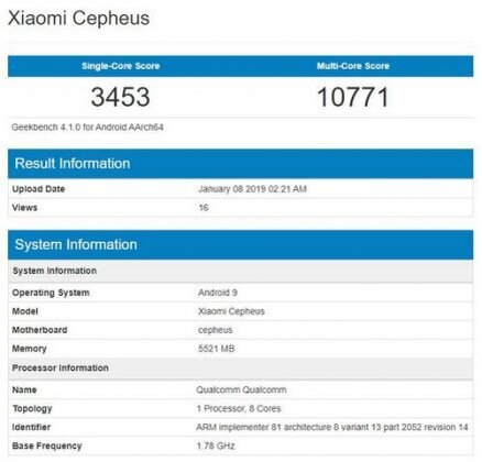 Xiaomi Mi 9 может появиться на Geekbench как Xiaomi Cepheus