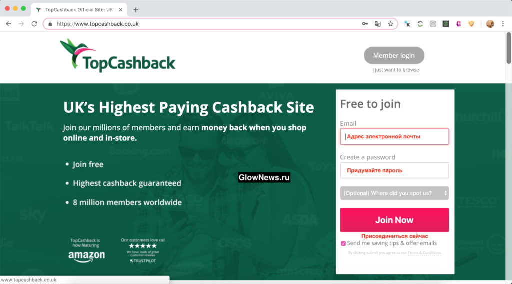 Сервис по возврату кэшбэка TopCashback.uk.co