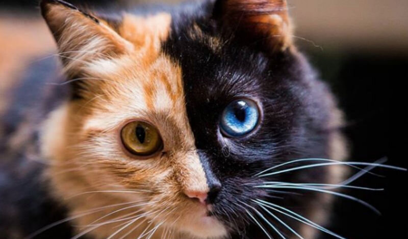 Знакомьтесь, это Химера – кошка с крайне редким внешним видом. У Химеры, так сказать, две половинки – одна рыжая, другая черно-белая. Причем, самое примечательное, что на каждой стороне у кошки свой цвет глаз: на рыжей это желтый, на черной голубой. Разделение по цвету не останавливается на лице кошечки. Оно продолжается дальше по груди и передним ногам. Неизвестно, действительно ли кошка является химерой (хотя ее так и назвали). Химеры-животные появляются в результате слияния яйцеклеток утробе матери. Это редкое явление. Проверить наличие химеризма можно проведя ДНК-тест, который покажет наличие двух наборов разных хромосом. Кошка Химера живет в Аргентине со своим хозяином Эстани, который ведет инстаграм и выкладывает фотографии потрясающей и редкой красоты кошки. Эстани взял Химеру когда ей был год у неизвестной женщины и признается, что ничего не знает о прошлом любимицы и ее родителях. Но он сразу понял, как только увидел ее, что она особенная. Несмотря на необычный внешний вид, Хи