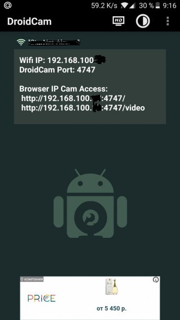 Android смартфон в качестве веб-камеры на вашем ПК Для начала устанавливаем на наш смартфон специальное программное обеспечение, которое называется Droid Cam. После установки, необходимо подключиться к домашней Wi-Fi сети и запускаем программу. В программе появиться информация с IP подключения и портом. Их необходимо записать или запомнить и перейти к домашнему ПК.