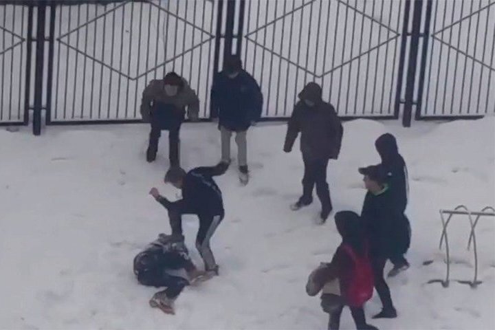 Толпа хулиганов избила школьника, прыгая на голову.
