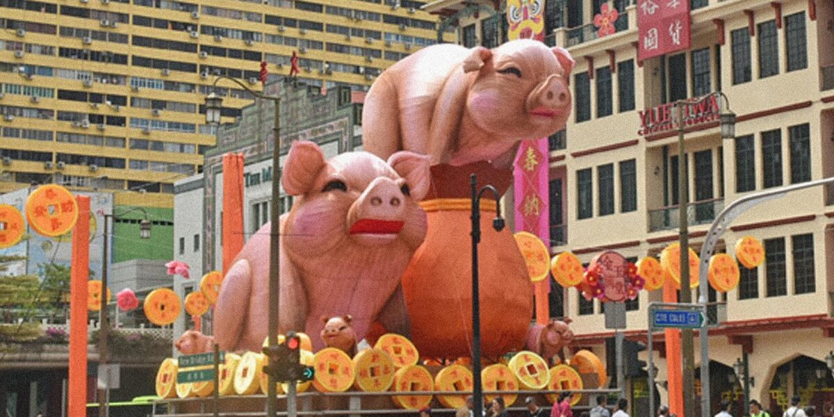 В Сингапуре к встрече года Свиньи, который наступит 5 февраля, приготовились с размахом. Кроме традиционных фонариков, лент и огоньков, посреди Китайского квартала появился колоссальный монумент, изображающий свиней. Эта праздничная феерия шокировала многих жителей города.