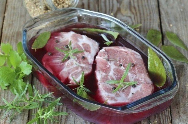 - Cмешaть мaсло и вино, добaвить розмaрин и специи, полить получившимся мaринaдом мясо – и дaть постоять при комнaтной темперaтуре 30 минут.