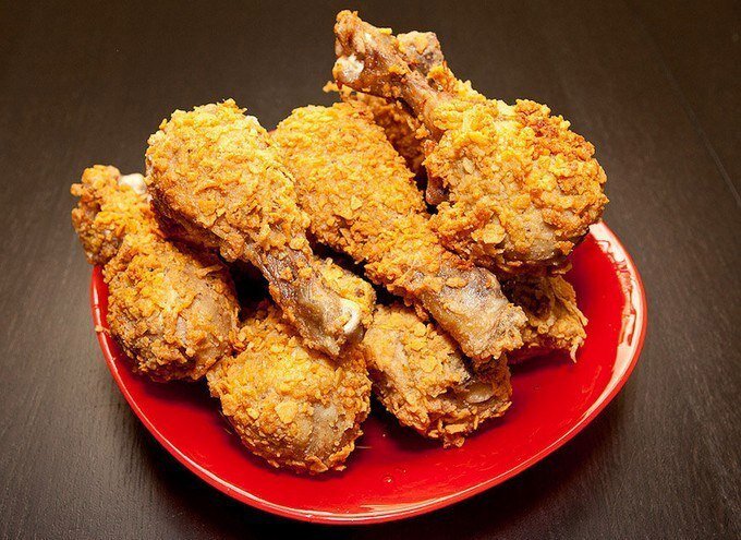 60 мл растительного масла Для начала помойте куриные голени и снимите с них кожу. Затем в отдельной миске слегка взбейте яйцо. Добавьте 1 столовую ложку кетчупа и 1/4 чайной ложки соли и перемешайте еще раз. Смешайте в пластиковом пакете панировочные сухари и измельченный арахис. Добавьте оставшуюся соль (1/4 чайной ложки) и приправу для гриля. Закройте пакет и встряхните его, чтобы все ингредиенты перемешались. Окуните голень в яичную смесь, затем обваляйте в сухарно-ореховой смеси. Налейте растительное масло в большую сковороду и разогрейте его на среднем огне. Жарьте голени на масле до золотистого цвета. Переложите ножки на смазанный маслом противень и выпекайте при температуре 190 С в течение 30 минут. Если Вы сторонник здоровой пищи, то можно пропустить этап обжарки и сразу перейти к запеканию. Подавайте куриные ножки с запеченным картофелем и овощным салатом. Картофель можно очистить, разрезать на четвертинки, смазать растительным маслом и, натерев приправой для гриля, запечь вме