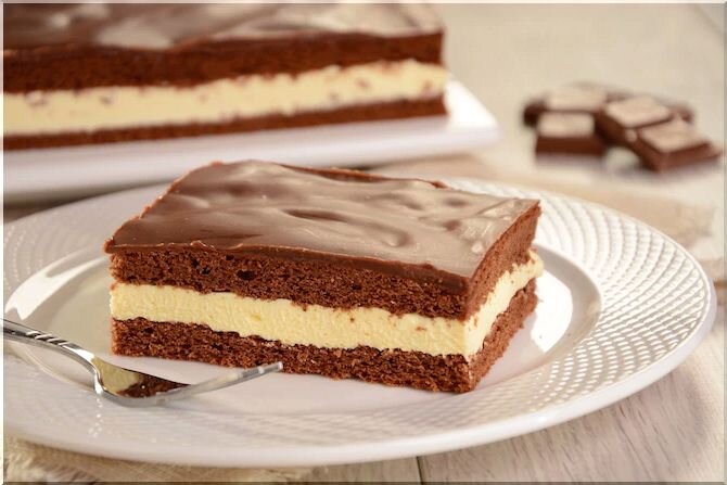 Здравствуйте, дорогие читатели!) Вы любите домашние сладости? Если это так, не забудьте приготовить домашнюю вариацию популярного батончика. Два слоя какао-теста, разделенные нежной и пушистой белой начинкой. Время приготовления: 30 минут Ингредиенты: тесто: крем: топпинг: Приготовление: 1) Отделите белки от желтков и взбейте их с сахаром до образования жесткой пены. Продолжая взбивать, добавьте яичный желток в пену. 2) Затем добавьте лимонный сок, масло и продолжайте взбивать. Смешать муку с какао и разрыхлителем. Аккуратно смешайте с яичной массой. 3) Вылейте тесто на дно с противня. Выпекать при температуре 180 градусов около 30 минут. Затем выньте из формы и разрежьте на две части. 4) Вскипятить молоко с сахаром, затем, когда сахар раствориться, остудите. Взбить маргарин, затем, продолжая взбивать, вылить молоко с сахаром. Затем добавьте сухое молоко и сливочный сыр небольшими порциями. Хорошо взбейте. 5) На одну половину намазать крем, затем сверху положить вторую и слегка прида