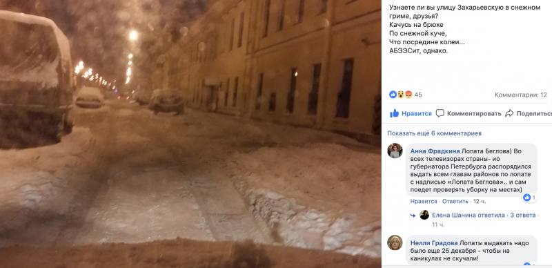 Посмотреть как реагируют горожане на происходящее можно в социальных сетях. Живые люди (интереснейший пример обсуждения по ссылке), а не «инстаган-боты», ставку на которых сделали советники врио. Набирает популярность флешмоб с саркастическими хэштегами #мойврио и #люблюврио, которые жители города ставят под публикациями с фотографиями занесенных снегом улиц и автомагистралей. На улицах все меньше можно увидеть пожилых людей, а инвалиды или мамы с маленькими детьми в колясках пропали вовсе — им просто физически не проехать по занесенному снегом льду на тротуарах.