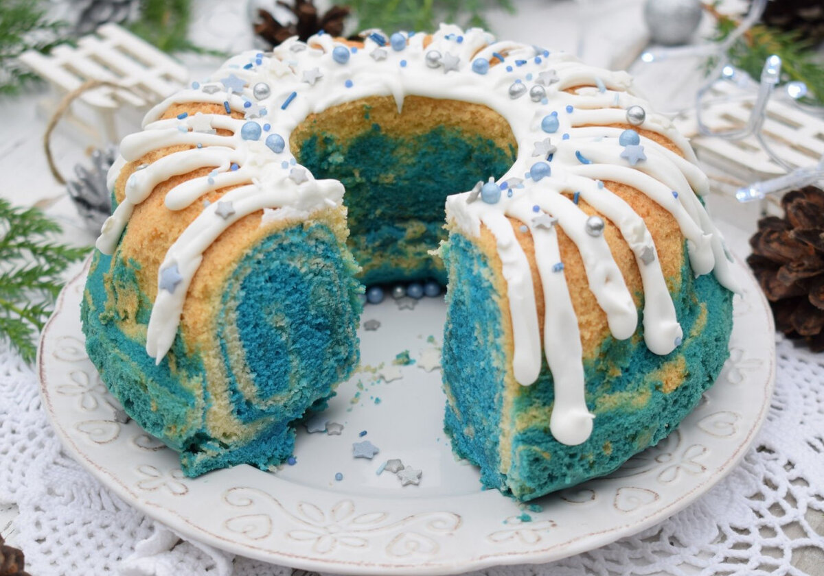 Бабушка на Рождество? Звучит абсурдно, но это не так. Бабушка печет на Пасху, но кто сказал, что нельзя идти на Рождество? Необычный торт удивит ваших близких. Это производит впечатляющее впечатление. Украшенный глазурью, очень вкусно. Удивите детей и близких. Все легко и очень просто ВРЕМЯ ПОДГОТОВКИ: БОЛЕЕ 1 ЧАСА КОЛИЧЕСТВО ПОРЦИЙ: 5+ ИНГРЕДИЕНТЫ тесто: глазурь Дополнительно: МЕТОД ПОДГОТОВКИ 1. Торт:Маргарин тертый с сахаром и ванильным сахаром для пушистой массы. Постепенно взбить одно яйцо и натереть на терке. Разлить муку и разрыхлитель, натереть на терке. Разделите тесто на две части, одну, чтобы придать пище краситель, и тщательно перемешайте. 2. Выпечка:Выкладываем форму на торт с маргарином и посыпаем тертым хлебом. Положите тесто в форму для кексов, поочередно залейте тесто и синее тесто, смешайте палочкой, чтобы получились узоры. Выпекать булочку при температуре 180 градусов около 50 минут до коричневого цвета. Проверяем сухой палочкой и слегка остываем