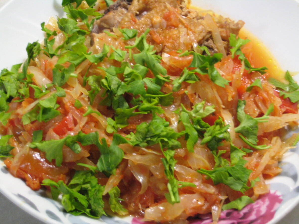 Тушеная капуста с курочкой по деревенски. Пошаговый рецепт с фото.