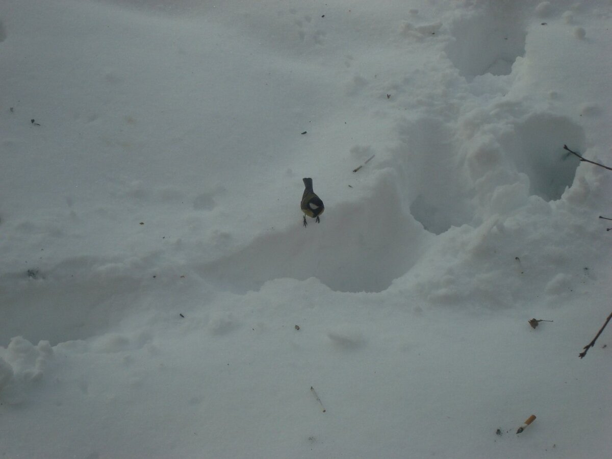 Зимой мы кормили птиц, подвешивая кусок сала на куст сирени за окном.