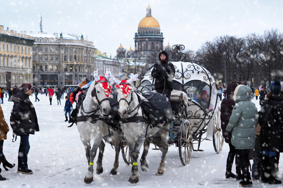 Сегодня не будет много текста… В первую очередь мне хочется показать именно фотографии… Чтобы читатель на миг превратился в зрителя и полюбовался видами заснеженного Санкт-Петербурга. Да, нам повезло уехать из зимнего дождливого калининградского болота и встретить в любимом городе на Неве настоящую зимнюю сказку! К слову, я заметил, что практически на все мои зимние визиты в этот город выпадал снег… Что это, обыденность 60° северной широты или просто везение? Наверное, и то, и другое. Как ни странно, но новая фотокамера, которую я собирался протестить суровой питерской погодой, практически все время пролежала в сумке… Доставал её лишь для фотосъемки панорамы города с колоннады Исаакиевского собора, для нескольких рабочих моментов (куда же без них), для портретиков любимой, ну и так… везде по чуть-чуть…