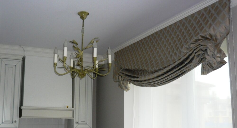 Эффектная и простая в эксплуатации (а также в пошиве). Это римская штора без многочисленных вставок. В наличии только утяжеляющая планка (без неё никак). Главное - иметь подъёмную систему (купив или соорудив своими руками). Принцип пошива На заготовленное прямое полотно сверху вниз настрачиваются ленточки (по числу кареток). И к ним пришиваются колечки на расстоянии 20-30 см. Если ткань плотная, или такая, которую не жалко (недорогая, одноразовая), колечки можно пришивать прямо к полотну, без ленты. Провисание в виде лодочки Если использовать только две каретки (две верёвочки), то ткань в поднятом положении будет провисать. Причём, перемещая каретки от края к центру, можно добиться различных форм этого провисания. Диапазон не очень широкий, в районе четвёртой части длины карниза, но эффект будет заметен. Каретки у краёв - длинная лодочка и по бокам - короткие рыбьи хвостики. Каретки ближе к центру - лодочка как люлька, а хвостики как у золотых рыбок. Но! Одно полотно - один эффе