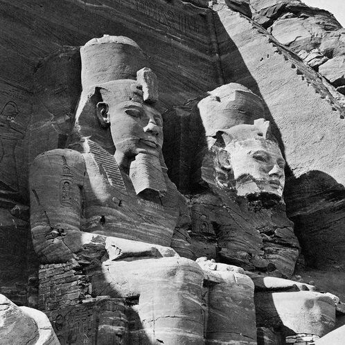 Абу-Симбел («отец хлеба» на арабском) – это местность в 285 километрах к югу от Асуана, высокий прибрежный скальный массив, в толще которого в XIII веке до н.э. зодчие и строители фараона Девятнадцатой династии Рамсеса II создали два ставших широко известными храма. Южный был посвящен самому правителю («Большой храм»), а расположенный в нескольких сотнях метров к северу – Нефертари, главной и самой любимой жены Рамсеса («Малый храм»).