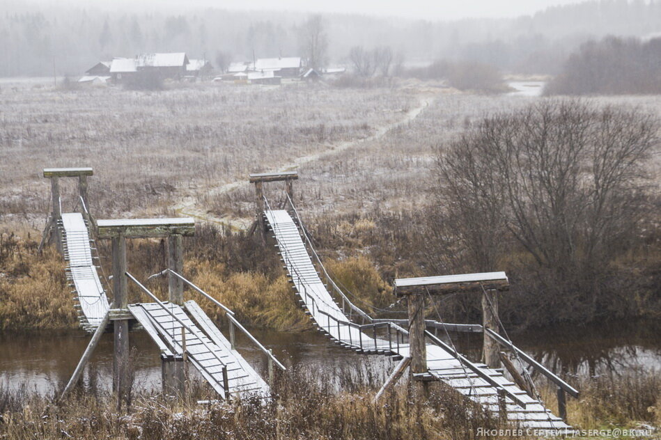 Андричево одна из самых красивых деревень Архангельской области. Здесь почти никто не живет, хотя и расположена она на региональной трассе Р-2. Здесь старинные дома, красивые угоры, подвесные мосты и живописные изгибы реки Пуя, восстановленная колокольня и полуразвалившаяся Никольская церковь.
