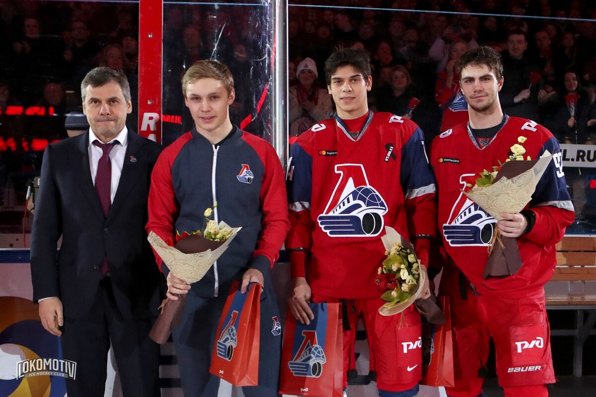 10 января, перед матчем против СКА, на льду «Арены-2000» прошло чествование трёх игроков «Локомотива» - бронзовых призёров прошедшего чемпионата мира среди молодёжи - Николая Коваленко, Григория Денисенко и Кирилла Слепца. Все трое здорово проявили себя в сборной, а бонусом к игре стали индивидуальные достижения - Слепец стал лучшим снайпером российской команды, а Денисенко - лучшим бомбардиром всего турнира. Вдобавок к этому, последний вошёл в символическую сборную чемпионата. Молодцы!