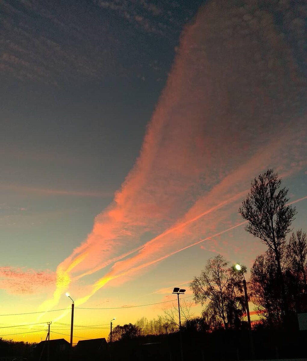 Как же неповторимо нарисовали самолеты на небе эти прекрасные узоры... Зимнее утро..Что может быть красивее, чем морозное небо, с встающим вдалеке солнцем. Умеет же наша Матушка - Природа так красочно укутывать снежными массами ветки деревьев.. Небесная мантия...потихоньку укутывает город. Игра света, придающая "моменту жизни" особенность. Спасибо большое за просмотр, комментируйте, ставьте лайки!