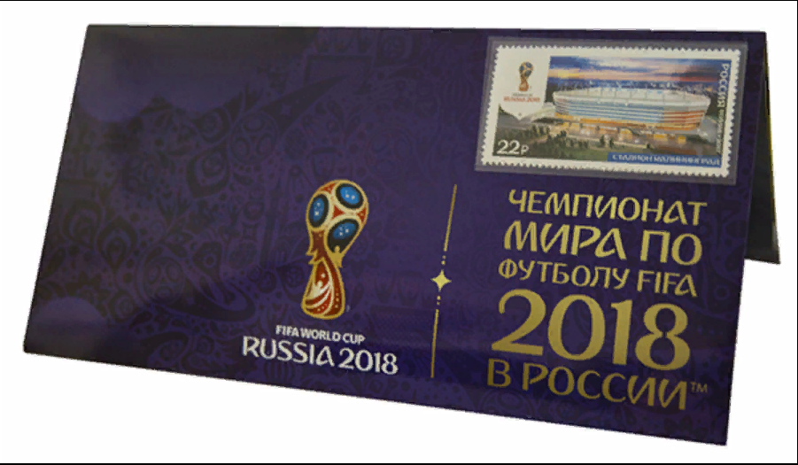 Стадион "Калининград" На обложке открытки изображены официальные эмблема и логотип Чемпионата мира по футболу FIFA 2018 в России™ и размещена художественная марка; на внутренних страницах — объёмное изображение стадиона. Открытки с марками посвящены стадионам, на которых будут проходить футбольные матчи: «Волгоград Арена», «Екатеринбург Арена», «Казань Арена», «Калининград», «Лужники», «Спартак», «Нижний Новгород», «Ростов Арена», «Самара Арена», «Санкт-Петербург», «Мордовия Арена», «Фишт». Эта продукция может стать оригинальным подарком для болельщиков и ценителей филателии в России и за рубежом. Чемпионат мира по футболу FIFA 2018 в России™ — 21-й чемпионат мира по футболу FIFA, финальный турнир которого пройдёт в России с 14 июня по 15 июля 2018 года. Чемпионат мира по футболу FIFA 2018 в России™ пройдёт в 11 городах: Москве, Санкт-Петербурге, Самаре, Саранске, Ростове-на-Дону, Сочи, Казани, Калининграде, Волгограде, Нижнем Новгороде и Екатеринбурге.
