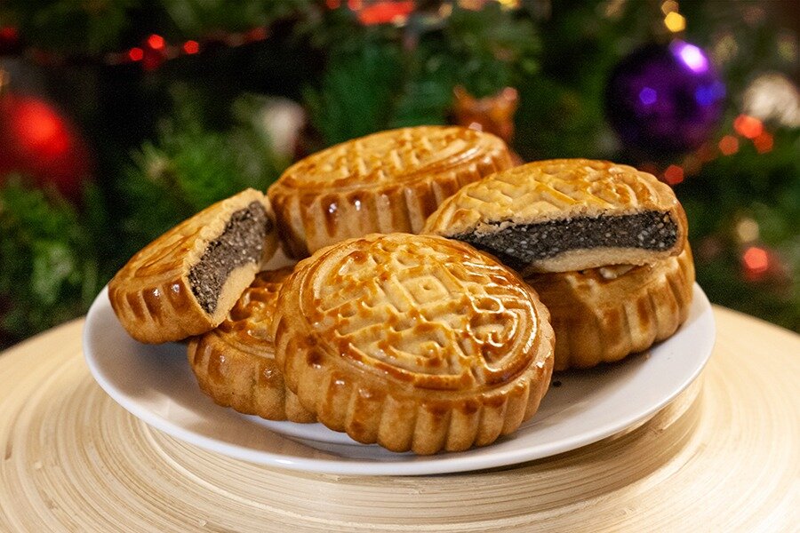 Пресс приехавший перед Новым годом имеет регулировку по толщине пряника и соответственно его веса. Я отрегулировал под размер весом около 65 г. Пропорции ингредиентов приведены из расчета на 10 таких пряников. Если у вас форма другого размера скорректируйте количество ингредиентов. Цзянь Шуй (в интернете можно найти как Кансуй) используемый при приготовлении пряников бывает в виде порошка или готового раствора. Наверняка видели ролики, на которых китайские мастера из куска теста вытягивают десятки тонких нитей лапши. Чтобы тесто так тянулось при замешивании добавляют этот щелочной раствор. В Москве он есть в китайской лавке на “Садоводе” или можно заказать в интернет-магазинах. Завтра выложу вариант изготовления подобного порошка в домашних условиях. Ингредиенты: тесто 150 г – муки 120 г – золотого сиропа (инвертного сиропа) ⅓ ч.л – порошка Цзянь Шуй 1 ст.л – воды 30 мл – растительного масла 1 шт – яичный желток + 1 ст.л воды (для смазки) начинка 170 г – черного кунжута 65 г – сливо