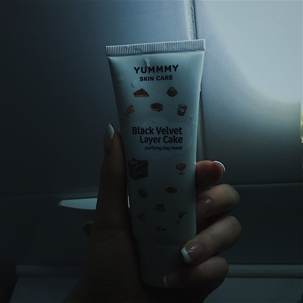 В связи с огромными скидками в сети магазинов «Летуаль» я залетела туда и начала нюхать все как ненормальная. И вот на очереди попалась безумно милая полочка с серией «YUMMMY skin care»,сразу привлёк дизайн этого продукта,а как пахнет его серия,словами не передать. Первый продукт который я распробовала на себе это отчищающая маска «Black Velvet Layer Cake» По скидке стоит около 120 р. объём 75мл,расходуется весьма экономично. Состав не плохой. Что самое главное в составе глиняной маски с углем? Правильно, глина и уголь. И они есть в составе, как есть лайм, цинк и жожоба. Есть даже ромашка. К составу у меня претензий нет, хоть он и не идеальный. Насколько же эффективным он окажется в работе? По моим общущениям маска хорошо питает кожу, делает ее мягкой, приятной на ощупь. Немного сужает поры. Маска хорошо смывается и в целом оказывает на кожу положительный эффект, она выглядит отдохнувшей . Легко распределяется по коже и хорошо смывается,что удивительно для глиняных масок. Мои ожида