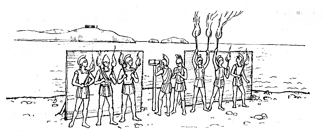 "Огненный" телеграф из Древней Греции, который работал на принципах позиционного кодирования.