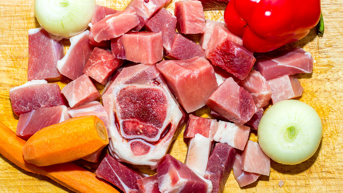 В прошлый раз меня справедливо упрекнули в добавлении майонеза при приготовление горячих блюд и даже не опубликовали пост в одном из сообществ. И совершенно правильно, ибо майонез это соус для блюд холодных и при термообработке распадается на составляющие, полностью теряя смысл. Да и картошку научили печь, далее покажу, красота! Поэтому учитывая старые ошибки сделаем сегодня очередное чудное блюдо. Берём кило свининки, пару морковок, пару лука, перец сладкий. Режем всё как сами привыкли И на огонь. Пусть шкварчит. Солим, перчим. Под конец готовки добавь воды чуток и крышкой накрой. Пусть потушится. А пока у тебя на плите шкворчало и тушилось нужно было почистить картошки и нарезав четвертинками обвалять в смесе соли и подсолнечного масла. И положить на протвень. Ну и в духовку оный затолкать. Градусов на 180. Сколько брать картошки? Ну сколько съедите. Вкусная будет, обещаю и съедите много! А под конец прибавь до 200 и выше. Минут на пять. Подрумянится! Вот такая красота по