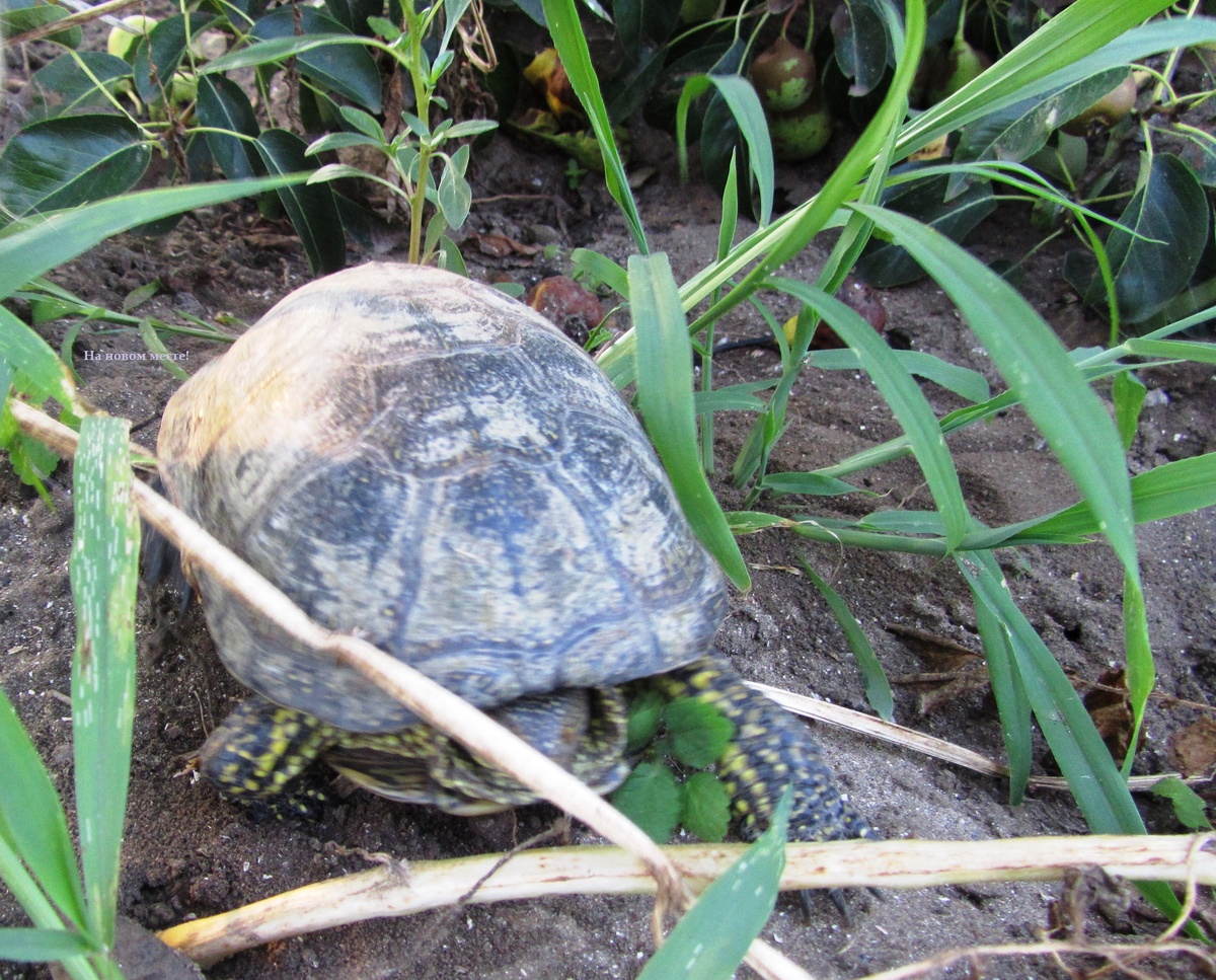 Как выяснилось груши любят все. Мы, наши собаки и.....черепахи! В ресторане под грушей и состоялось знакомство и обмен любезностями Шивы /пёс/ и Клавы /черепаха/. Сперва привлекло внимание как увлечённо Шива играет серым камешком, как футболист мячиком. Потом он стал на камушек лаять. Тут уж мы не выдержали, любопытство взяло верх, пошли смотреть. О! У нас гости! Или старожилы? Черепаху стали звать Клава. Клава пришла отобедать. Не знаю как у черепах с обонянием, но её явно привлекла падалица конференции. У Шивы это было первое знакомство с не себе подобными. Не могу сказать что Клава была рада знакомству. Развернулась на 180 и приготовилась к старту. Клава задала стрекоча! Мнение "медлительный как черепаха" ошибочно... Шиву отправили домой, куда исчезла Клава не видели, то что она осталась жить у нас проявилось весной. Поделитесь, кто живёт с вами по соседству. В другой раз познакомлю с остальными жителями нашего сада! Не пропустить вам поможет подписка на мой канал, если кто н