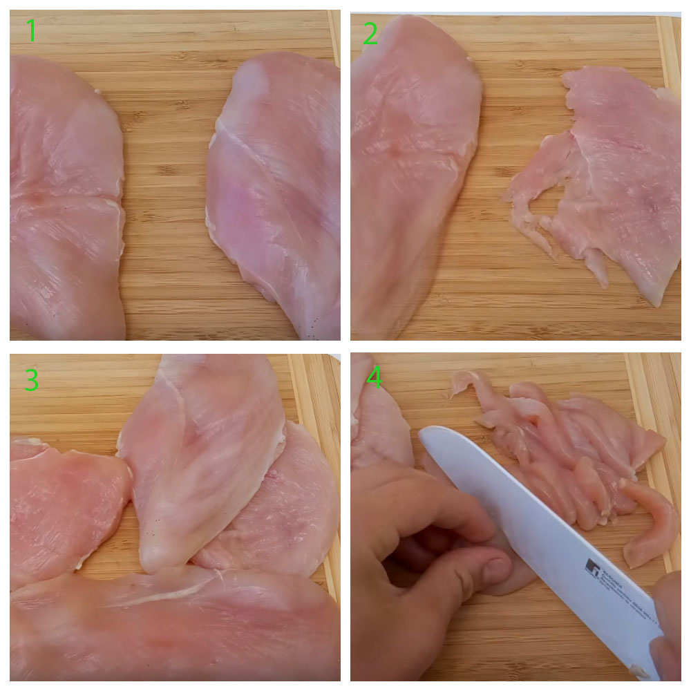 Ингредиенты: Куриные грудки - 2 шт Лаваш Помидоры, огурцы, капуста и покупная корейская морковь Майонез и кефир Соль, перец и специи для курицы Шаги: 1 - Мясом для шаурмы у нас будут куриные грудки 2 - Берем острый нож и расслаиваем курицу вдоль 3 - В итоге у нас получиться 4 половинки грудки 4 - Теперь половинки курицы нарезаем на полоски, чтобы курица быстрее прожарилась Выкладываем нарезанные кусочки в миску, добавляем приправу для курицы и все перемешиваем 1 - Отправляем курицу на сковородку,обжариваем примерно 5 - 7 минут на максимальном огне 2 - Обжариваем до золотистого состояния Нарезаем овощи, помидоры, огурец и капусту Добавляем в капусту щепотку соли и сжимаем руками, чтобы она дала сок Нам остается сделать соус для нашей шаурмы 1 - Высыпаем небольшую пачку майонеза, лучше всего брать жирный. Добавляем щепотку соли и перца 2 - Выдавливаем 2 зубчика чеснока и вливаем,примерно, пол стакана кефира 3 - Все это хорошо перемешиваем Все ингредиенты готовы, начинаем собирать на