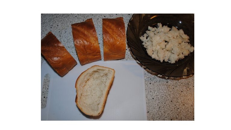 ------ Заходят два приятеля в кафе, заказывают напитки и достают свои бутерброды... Официант: - Господа, у нас нельзя есть свою еду! - Приятели молча и недоумённо переглядываются и меняются бутербродами... Попробуем сегодня приготовить что-то среднее между бутербродом и пиццей. Нам необходимо подготовиться: 1) Берем целый батон, отсекаем горбушки, нарезаем толстые ломти (примерно 6 см). То есть из целого батона получается 4 нужных ломтя - на 4 порции. Выщипываем аккуратно мякоть из бутербродов, оставляя донышко толщиной примерно 1см (стараемся обойтись без дырок). 2) Мелко нарезаем репчатый лук, вареную колбаску или ветчинку, болгарский сладкий перчик, тонкими пластиками помидор, натираем сыр. Готовим соус: смешиваем майонез с любым томатным соусом, если любите острое - можно добавить красного молотого перца, можно смесь сухих трав для пиццы. Поехали дальше! На донышко ломтей батона добавляем приготовленный соус, в соусе утапливаем репчатый лук..