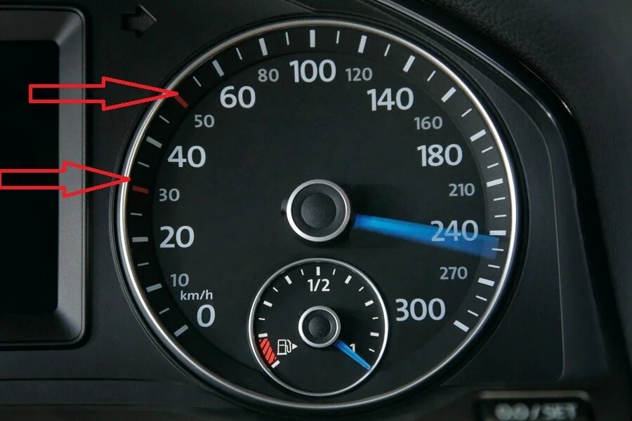 Я думаю каждый водитель замечал, как на спидометре присутствуют два, а реже три красных деления, но мало кто из водителей знает, для чего они там нужны. Далее ответим на этот вопрос. Сначала вроде бы не замечаешь ничего странного - ездишь себе каждый день и все. А потом вдруг ловишь себя на мысли, что на приборной панели присутствуют различные красные деления и не понимаешь цель их нанесения. Сначала не придаешь этому значения, а потом начинаешь задумываться - для чего??? Эти отметки нанесены на спидометре возле 30 и 50 км в час и они всегда выделяются на фоне других белых делений. Как Вы уже догадались- тут все дело в скоростном режиме. Некоторые автовладельцы думают, что данные значения должны подсказывать водителю, когда лучше всего переключать скорость в пределах этой зоны. Некоторые считают, что все дело в экономичности вождения. Но если внимательно изучить этот вопрос, то подобные деления можно встретить как на механической коробке передач, так и на машине с автоматом. Ответ зд