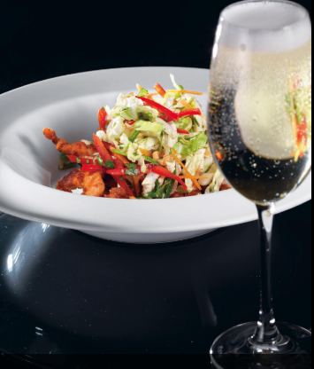 Ингредиенты Пшеничная мука 2 столовые ложки Куриное филе 200 г Соевый соус 35 мл Кунжутное масло 2 чайные ложки Оливковое масло 20 мл Китайская капуста ½ кг Зеленый сладкий перец ½ штуки Красный сладкий перец ½ штуки Морковь ½ штуки Кинза 3 стебля Красный лук 15 г Зеленый лук перья 1 штука Грецкие орехи 10 г Чеснок ½ зубчика Имбирь 5 г Кленовый сироп 1 чайная ложка 1. Куриное филе нарезать соломкой, посыпать мукой, добавить 2 столовые ложки соевого соуса и чайную ложку кунжутного масла. Перемешать, чтобы все куски курицы оказались в панировке. 2. Раскалить сковороду и, разобрав слипшиеся куски, обжарить обвалянную в муке курицу на оливковом масле до золотистого цвета. Потом переложить ее на бумажные салфетки, чтобы они впитали лишнее масло. 3. Крупно нарезать китайскую капусту. Взять по половине красного и зеленого перца и нарезать тонкой длинной соломкой. Такой же соломкой нарезать половину небольшой моркови и перо зеленого лука. Переложить овощи в миску. 4. До