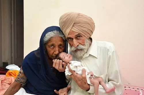 В наше время, женщинами беременными 40+ мало кого удивишь, а вот как насчет 50, 60 +? Героини этой подборки, рискнули и стали мамами в пенсионном возрасте. Далджиндер Каур 72 года (или 70 лет) Индианка Далджиндер Каур , родила своего первенца в 72 года (по другим данным в 70 лет, ее мужу на этот период было 79! Зачатие произошло при помощи ЭКО. И в 2006 году у них появился сын - Арман, весом всего в два килограмма. Раджо Деви Лохан - 70 лет Путем ЭКО родила первенца в 70 лет! Несмотря на то, что индианка Раджо Деви Лохан вышла замуж за своего мужа Бабу Рама, которому было 14 в 12 лет - детей они не нажили, что в Индии сродни греху. Но в один прекрасный день в телевизионной передаче они увидали, что с помощью процедуры ЭКО можно стать родителями, оплатив огромную для индийской семьи сумму Раджо провели ЭКО и в 70 лет она родила девочку Нави. Дон Брук - 59 лет Это самая возрастная роженица, чей ребенок был зачат естественным путем! Родила в 59 лет. Сначала англичанка приняла симпто