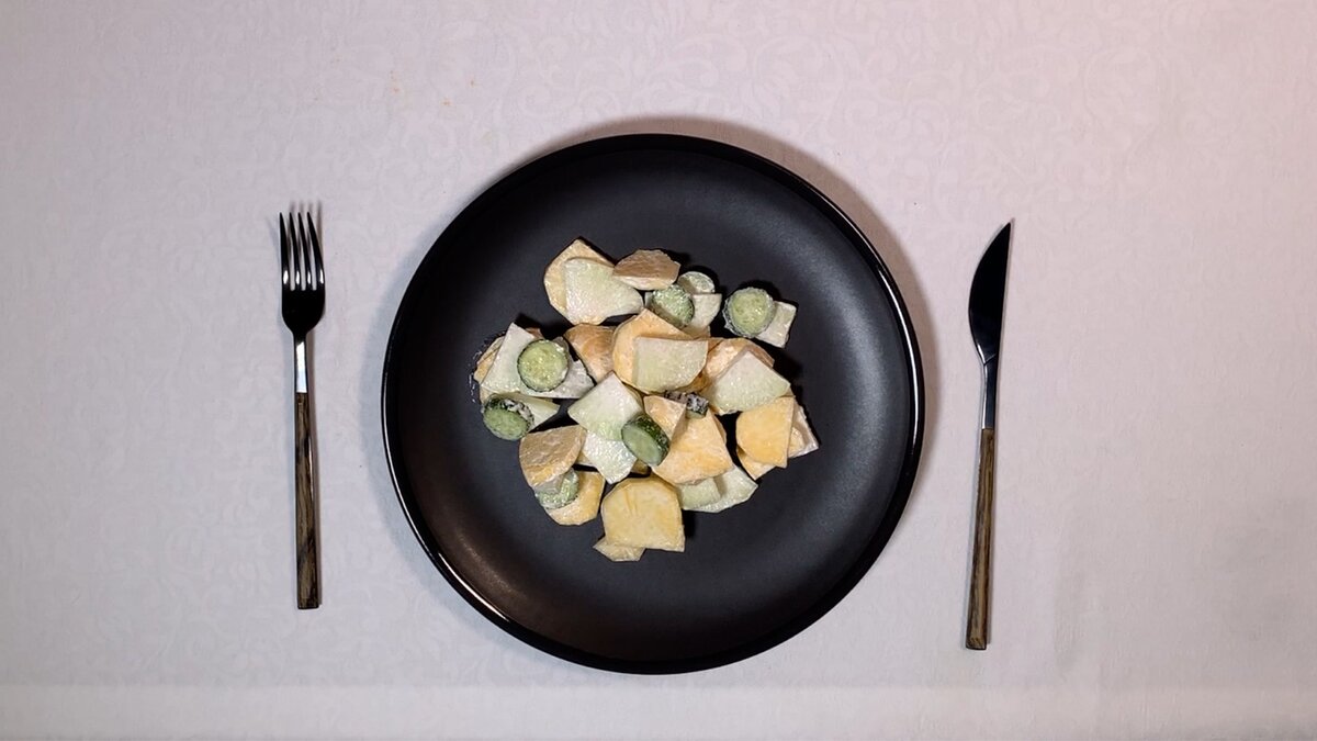 Репа содержит много витаминов и кальция. Хорошо хранится и может быть резервом для вашего легкого ужина. Ингредиенты на 2 порции - Репа – 2-3 штуки – 250-300 грамм - Любой из: салатная смесь – 40 грамм, дайкон – 150 грамм, кольраби – 150 грамм, огурцы – 150 грамм. Комбинация ингредиентов тоже подойдёт. - Сметана или песто Как в ресторане - Подача на чёрной тарелке +30% к вкусу)) - Если дополнительные ингредиент салатная смесь, то добавьте в салат апельсин, он хорошо сочетается с репой. - Кинза и лук усилят вкус. Приготовление Видео рецепт Мы в Instagram