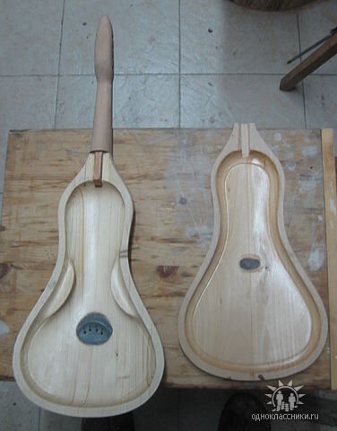 В детстве моя младшая дочь училась музыке по классу скрипки и я решил попробовать изготовить этот инструмент. Скрипка получилась и на ней даже играли. Затем я сделал ещё парочку и возникла идея подойти к этому делу не традиционно. Верхнюю и нижнюю деки я выдолбил из цельного массива и вот, что получилось...
