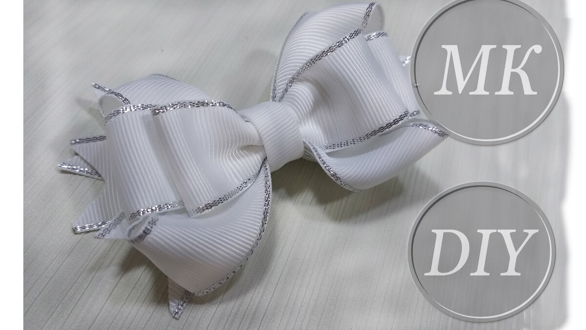 В этом мастер-классе я покажу как сделать универсальный бантик из репсовой ленты. Бант подходит как украшение на заколку, так и красивое украшение для ободка. Для работы потребуется: Материалы: Репсовая лента 2,5 см - 45 см - 1 отрезок Репсовая лента 2,5 см - 20 см - 1 отрезок Репсовая лента 2,5 см - 16см - 1 отрезок Репсовая лента 2,5 см -11 см - отрезка на флажки Репсовая лента 2,5 см или 0,9 см - 7-8 см для серединки