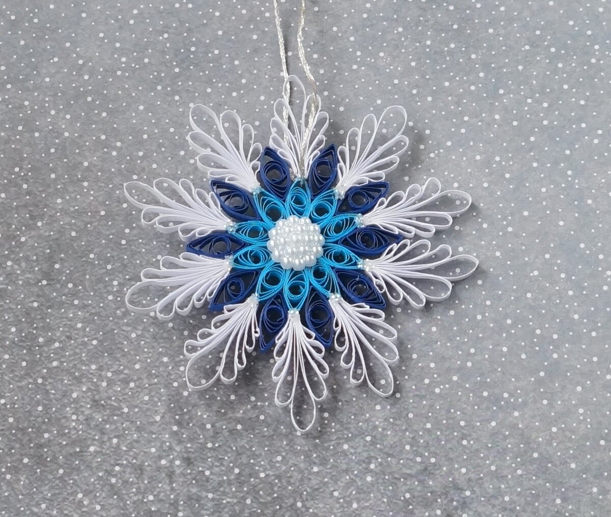 Как ажурные снежинки создают настроение Совершенно очаровательные снежинки в технике квиллинг привлекают своей ажурностью и неземной легкостью. Они и правда очень воздушны, т.е. совсем мало весят. Я сложила, собрала, склеила одну снежинку и по ее образу и подобию создала целую серию снежинок. У каждой снежинки свой характер и свое настроение, которое можно уловить, почувствовать... Давайте посмотрим как они выглядят и чем отличаются. Модель снежинки одна и та же. Но за счет разных цветовых решений они такие разные))) Сине-голубая красавица с белыми лучами – перьями. Середина снежинки выполнена в технике классического квиллинга, а вот эти самые «перья» - это уже петельчатый квиллинг, т.е. выполнено в технике петельчатого квиллинга. Это абсолютно новогодняя снежинка. А вот и бирюзовая снежинка. Она уже совсем другое настроение создает. Она еще более уютная и в то же время довольно строгая Яркая, рыжая, веселая и озорная снежинка. Гордый и благородный цвет бордо. А эта снежинка, как не