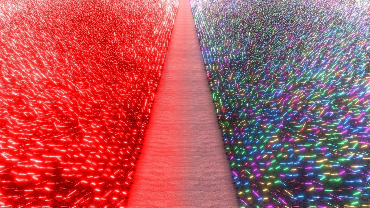 Ставь лайк и подписывайся на свежие новости! Если раньше люди гадали, каким было бы сражение, если столкнуть определенных персонажей между собой, то сейчас мы можем лично смоделировать любую битву. Это правило распространяется и на вселенную Звездных Войн. В интернете появился интересный ролик, на котором 20 тысяч Ситхов сразились с 20 тысячами Джедаев. В начале видео можно наблюдать сражение один на один, в котором схлестнулись Дарт Мол и Оби Ван, ну а потом автор устроил настоящую мясорубку, в которой сысячи световых мечей пошли в ход. Битва настолько затянулась, что даже солнце успело зайти, однако джедаи и ситхи до последнего сражались друг с другом.